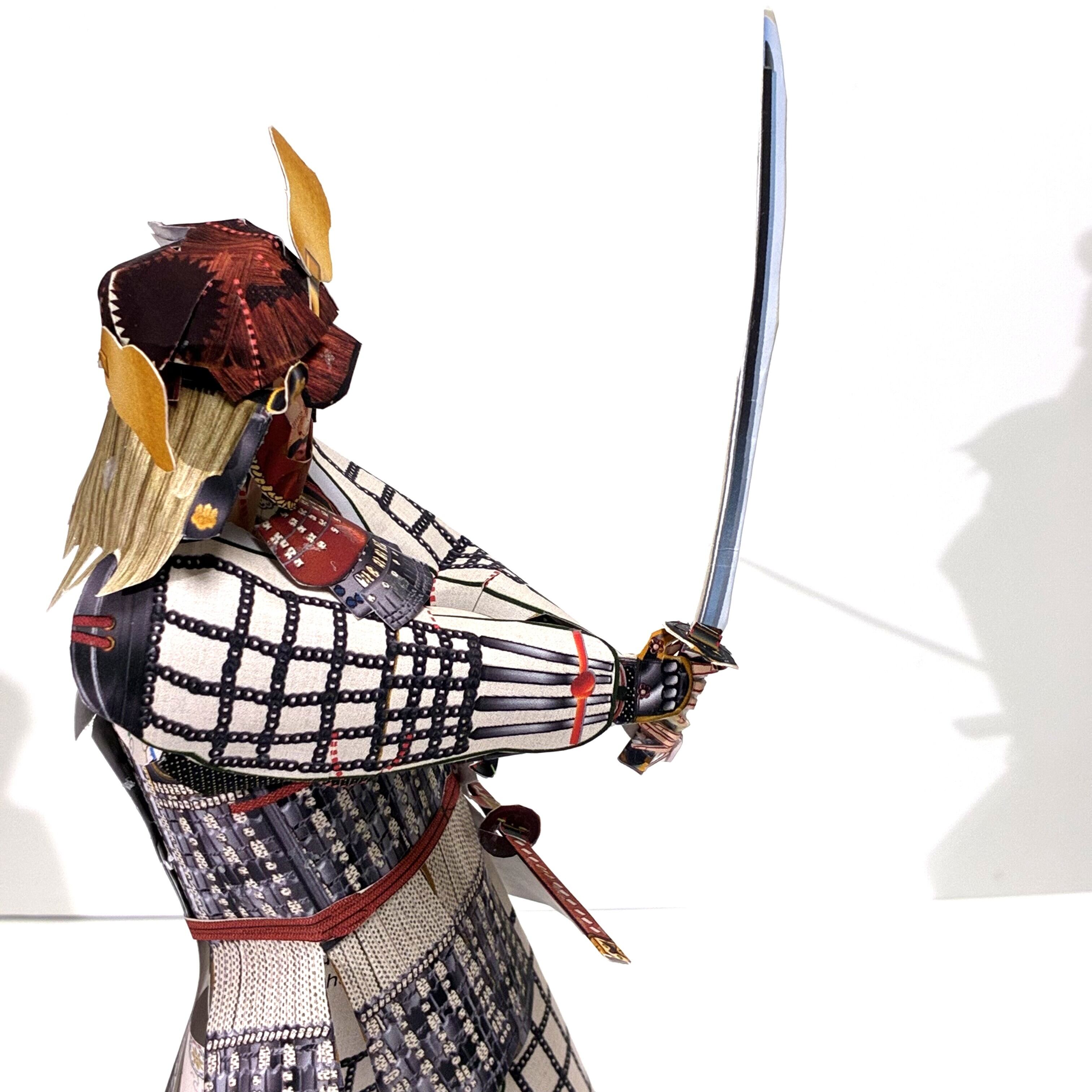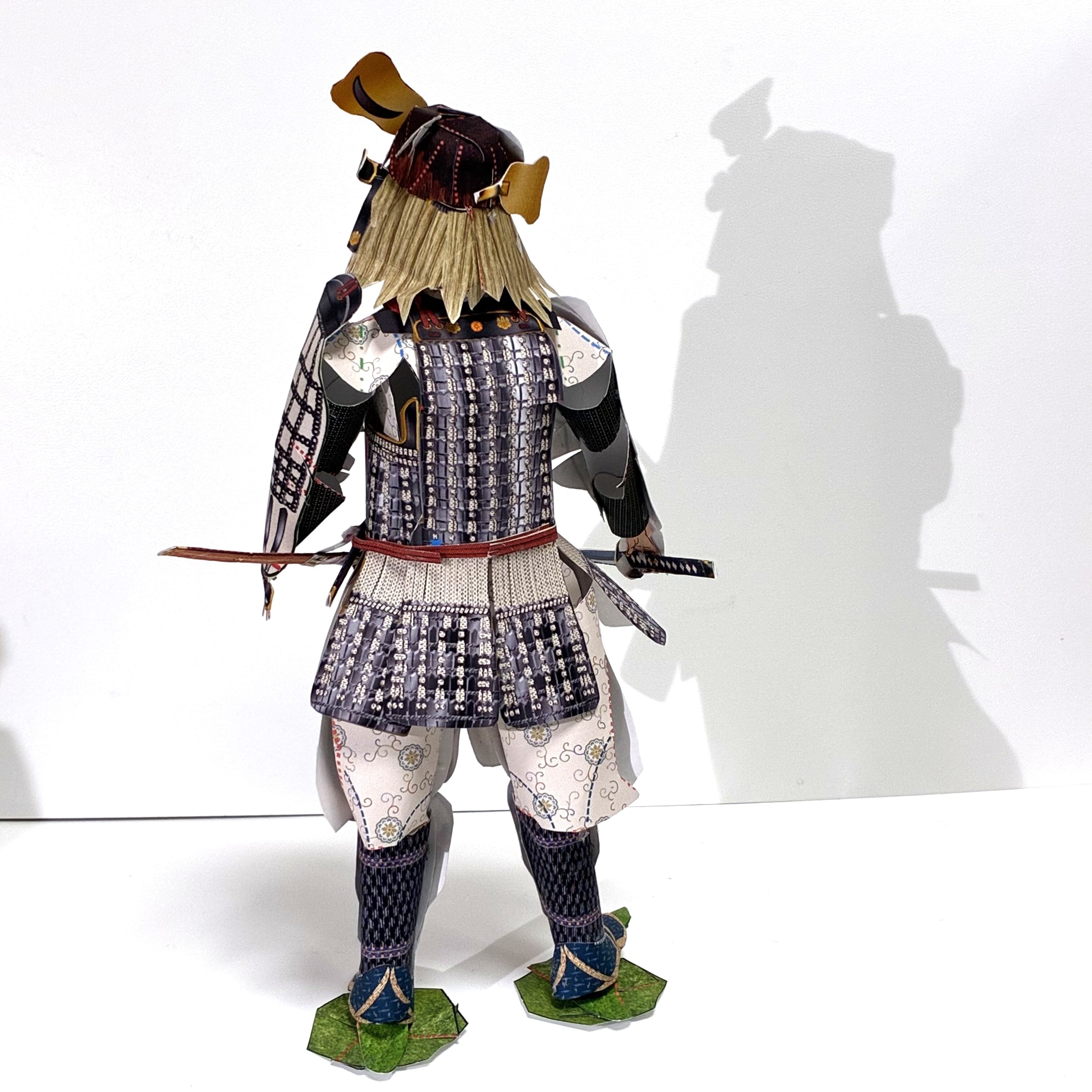 *戦国時代に弟「豊臣秀長」とともに天下を統一した「豊臣秀吉」の甲冑姿をモデル化しました!豊臣秀吉所用で伊達正宗に贈られた甲冑「銀伊予札白糸威胴丸具足」を忠実に再現。